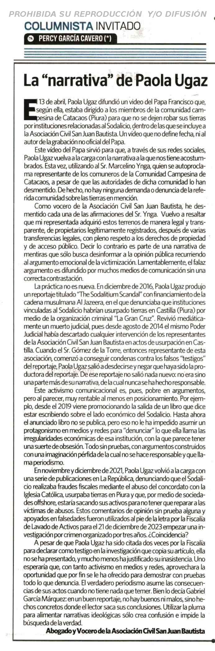 Se destacan los documentos aclaratorios sobre las acusaciones de tráfico de tierras y hostigamiento asociadas a los comuneros y campesinos de Catacaos, localidad ubicada en la región de Piura, Perú.